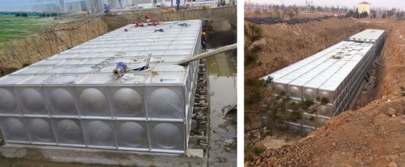 四、按照圖集及技術要求進行組裝,用Φ10*30熱浸鋅螺絲與環(huán)保耐水抗老化膠條組裝而成,地埋式箱泵一體化的水箱組裝成型后,進行拉筋及頂柱的安裝。拉筋選用Φ48的熱浸鋅管對拉,每1米縱橫交叉安裝。頂柱選用Φ48的熱浸鋅管每平方4根均布密封處理。